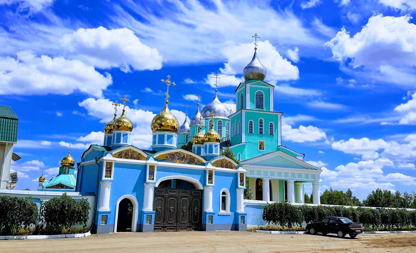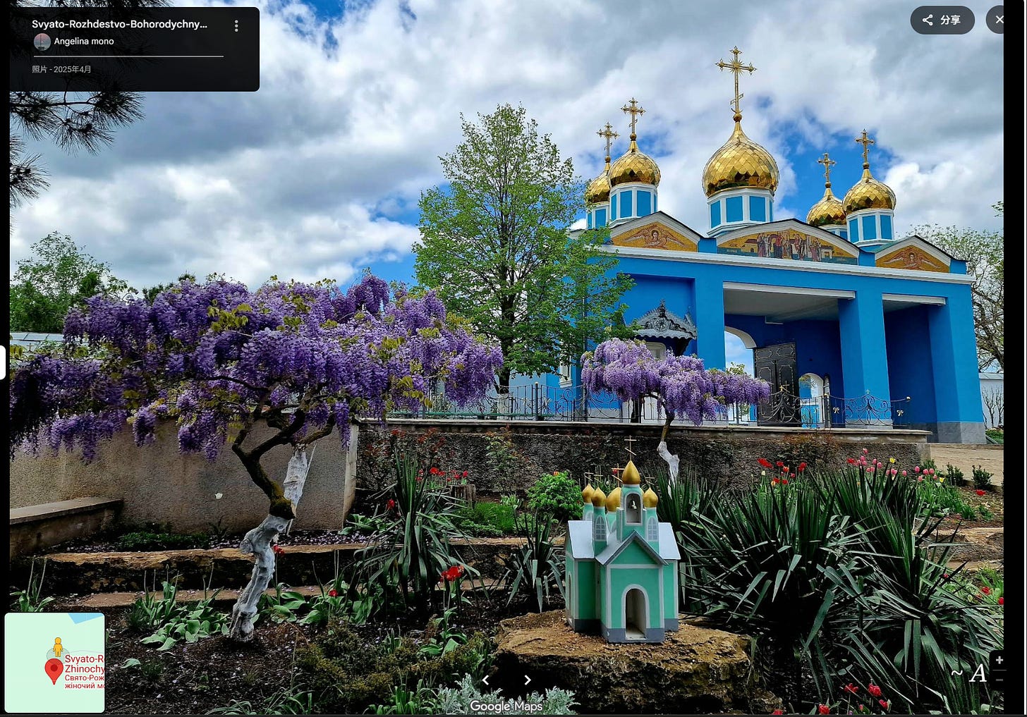 这个坐标离一座漂亮的修道院Svyato-Rozhdestvo-Bohorodychnyy Zhinochyy Monastyr非常近。中文可译作:“圣母诞生女子修道院”,属于乌克兰正教会(敖德萨教区),在敖德萨州南部博尔格勒区、奥列克桑德里夫卡村附近的草原与农田之间。